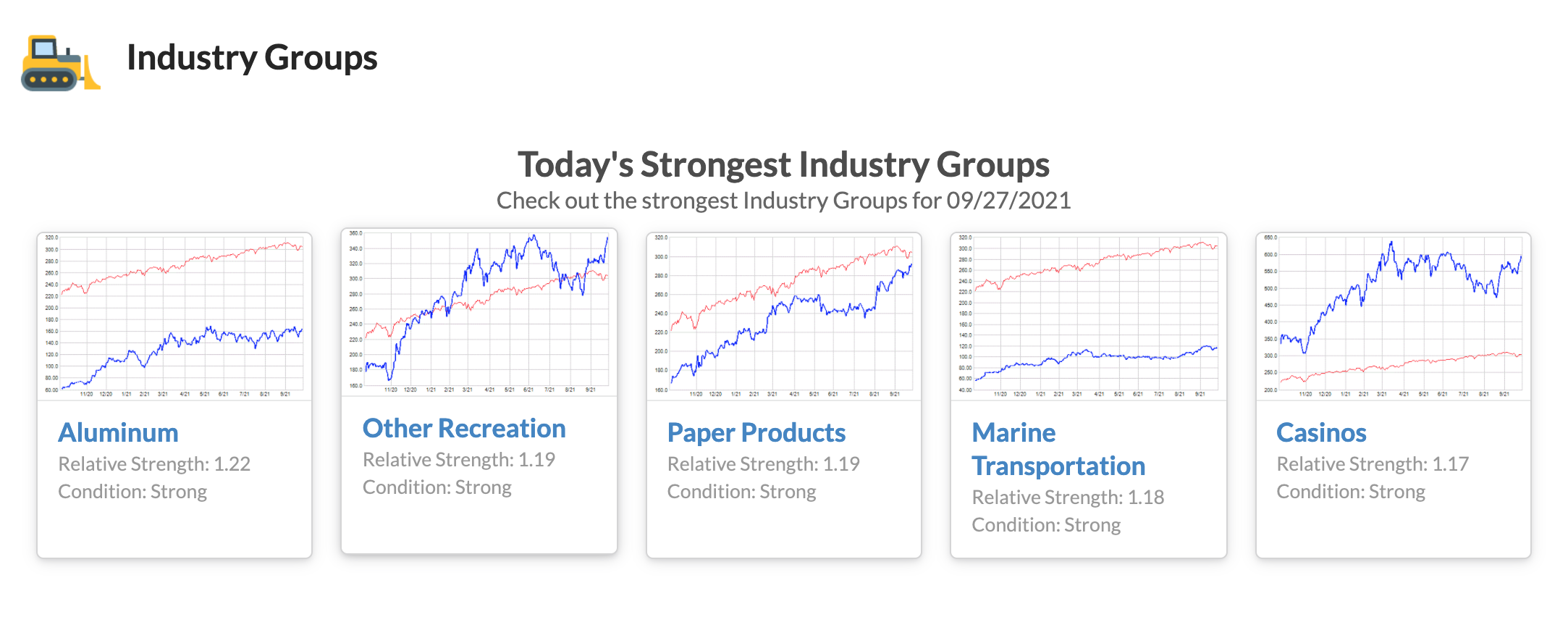 MarketEdge analyzes the technical condition of 91 Industry Groups daily to determine which are Strong, Weak, Improving, or Deteriorating. The technical conditions of the Industry Groups are also classified as a market performer, outperformer, or underperformer based on the status of the MarketEdge Strength rating.